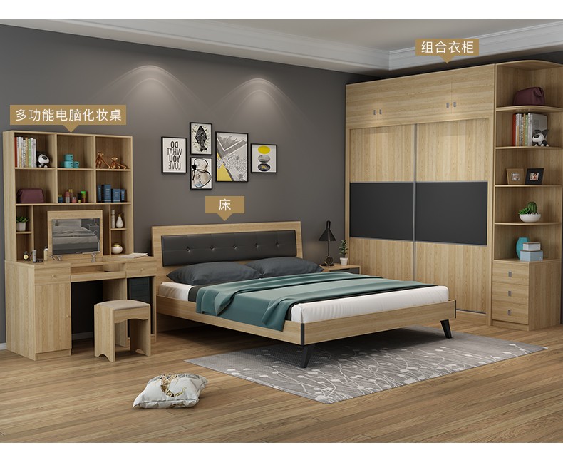 ケイモン豪創北欧板式ダブルスベッド現代简约主臥婚ベド小型1.8 m経済型ソフトベドAモデルフレームベトド(浅胡桃色)1.8*2.0メートルベトド+8022カートン+1つナイトレット+1つ