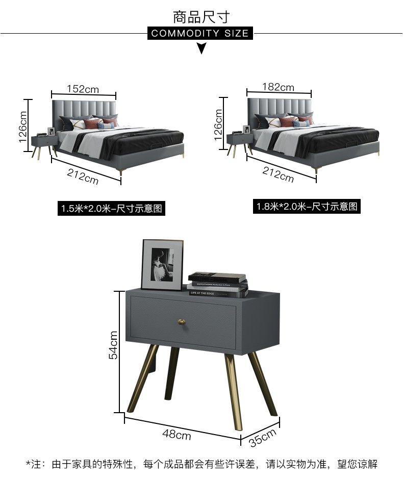 凱蒙豪はアメリカ式を作った後に近代的な軽奢な皮のベッドの本皮のベトドの主な寝床の結婚式ベッドネットの赤い簡便な大ベルドの進級版(固体の木の列の骨格を補強します)-気動の保管物の金の1.8*2.0メートル-裸のベッド