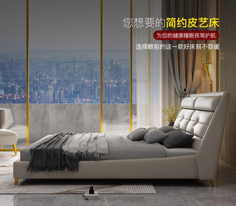 ケイム豪は北欧真皮ベドペアベッド現代簡単で贅沢な結婚式ベドを創建しました。ベッドの主な寝台ソフトベドの寝室スタイル家具1012*2.0メートルベド+9区加綿ゴムマット+1つのナイトテテテ