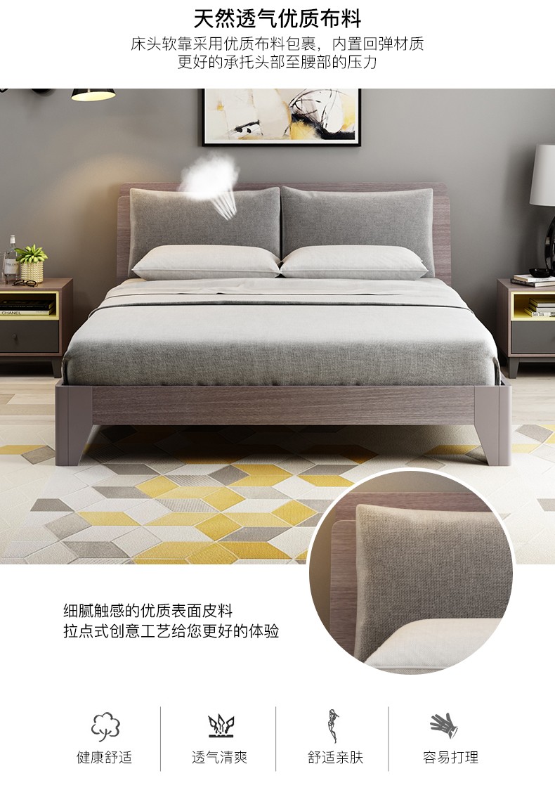 凱蒙豪創北欧ベッド現代简约主臥婚ベド貯蔵物ベド経済型プレート式布芸軟包ベケット1521.5*2.0 m-裸ベッド