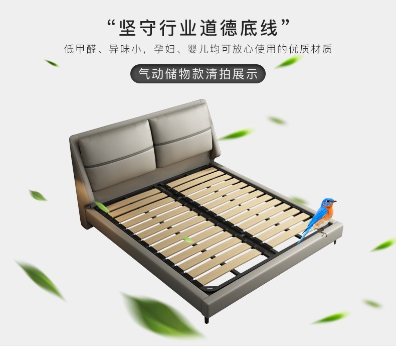 ケイモン豪創真皮ベト簡単現代の主寝台二人ベッドベド1.5メートル1.8メートル北欧の小型戸型ソフト、大ベド寝室婚ベトド1021*2.0メートルベド+9区加綿ラテックス+2つのナイトトラック