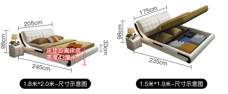 | 商品名 | ケイモン豪創ベッド本革ベド1.8 mダブルベッド現代簡単約1.5 mの主要寝台婚ベッド303標準モデル1.8*2.0メートルベド+マット+1箱 |