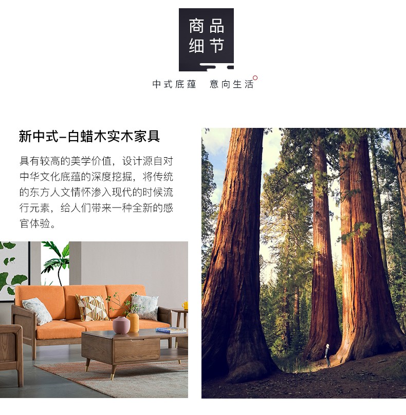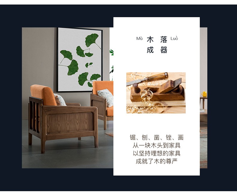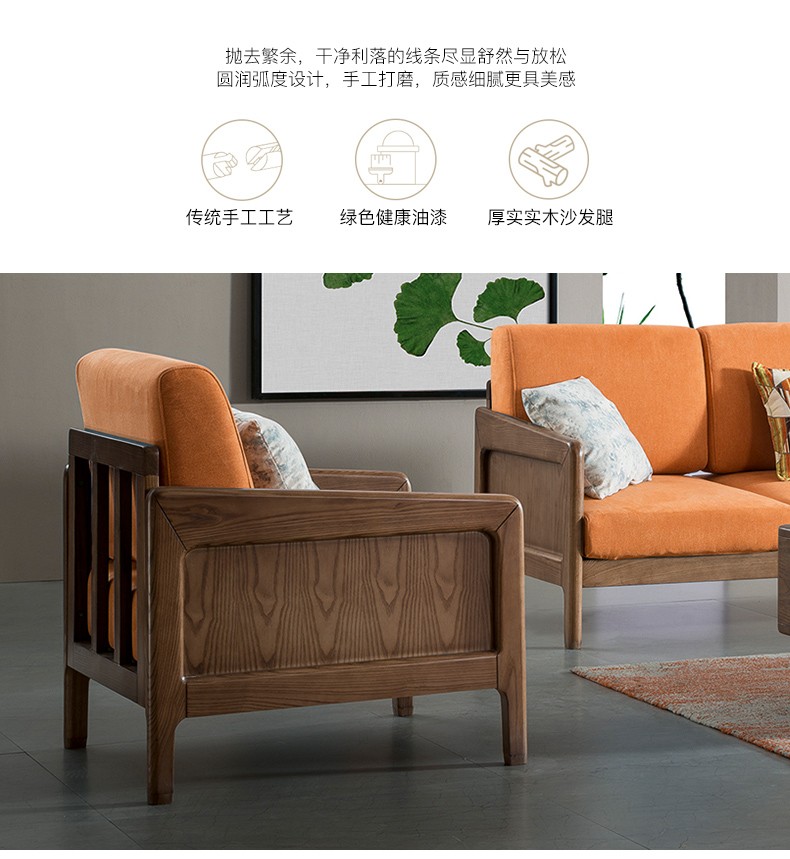 凱蒙豪創北欧実木ソファ現代新中国式客間冬夏両用ワックス木布芸ソファ·グループF 6003-ブルーシングルビット+ツインポジション+3人位+ロベルトベルト+テレビネット+ドコボット+高台