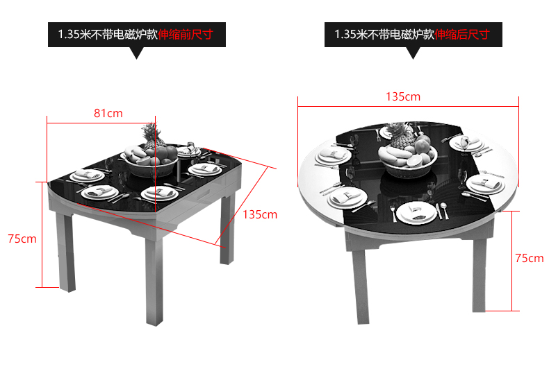凱蒙豪創ダニニググテブルチェア組合せ鋼化ガラス小型戸型現代簡約伸縮ダニリング801黒鋼化ガラス1.35 m一テーブル6椅子【写真価格ブランド見積り】-京東