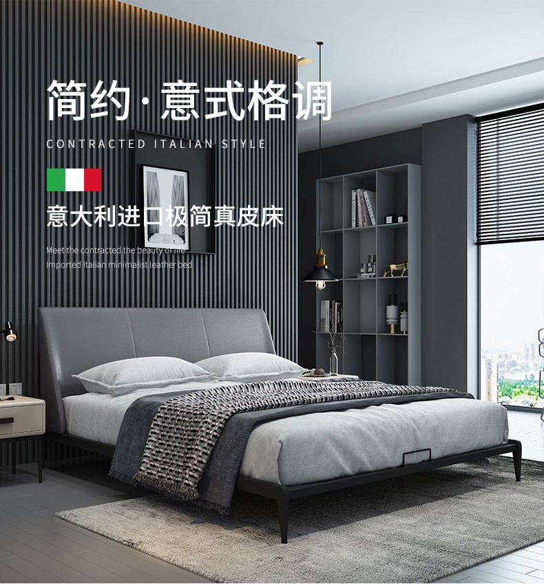凯蒙豪创 意式极简真皮ベッド双人1.5米北欧软ベッド1.8米轻奢现代简约ins网红婚ベッド DZ208 1.5*2.0米-ベッド+9区加棉乳胶マットレス+ナイト テーブル*1【图片 价格 品牌 报价】