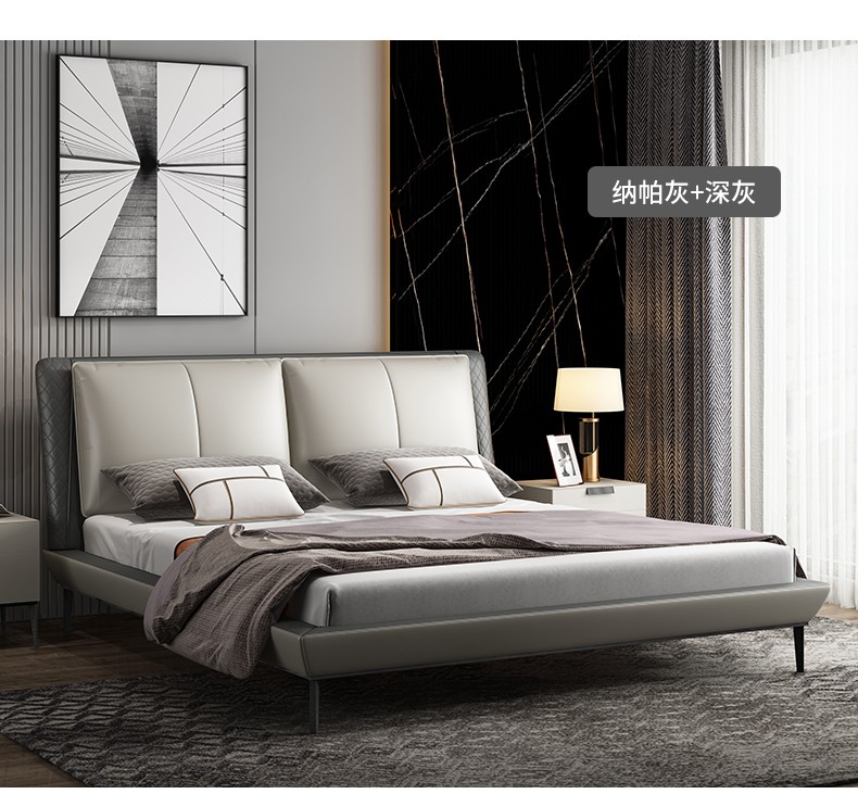 凯蒙豪创 北欧真皮ベッド现代简约主卧大ベッドins网红ベッド双人ベッド婚ベッド小户型轻奢皮ベッド 1056 1.8*2.0米ベッド+9区加棉乳胶マットレス+1个ナイト テーブル【图片 价格 品牌 报价