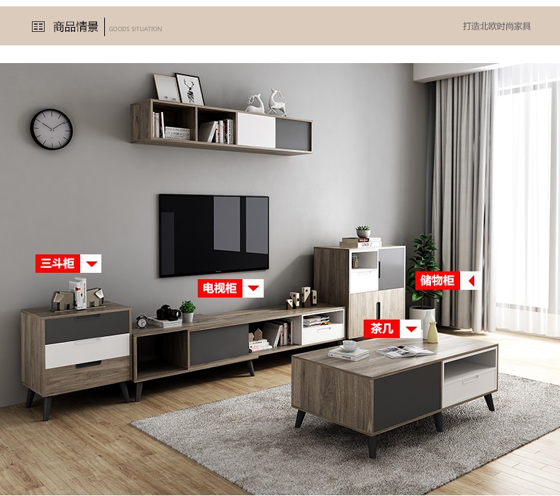 凯蒙豪创 北欧ローテーブルテレビキャビネット组合现代简约客厅板式储物柜地柜套装 ローテーブル+テレビキャビネット+8831三チェスト+8832边柜【图片 价格 品牌 报价】-京东