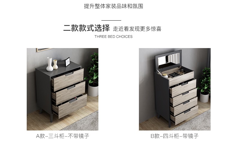 凯蒙豪创 北欧四チェスト创意三チェスト带妆镜储物柜小户型现代简约卧室收纳化妆台 8817-三チェスト チェスト【图片 价格 品牌 报价】-京东