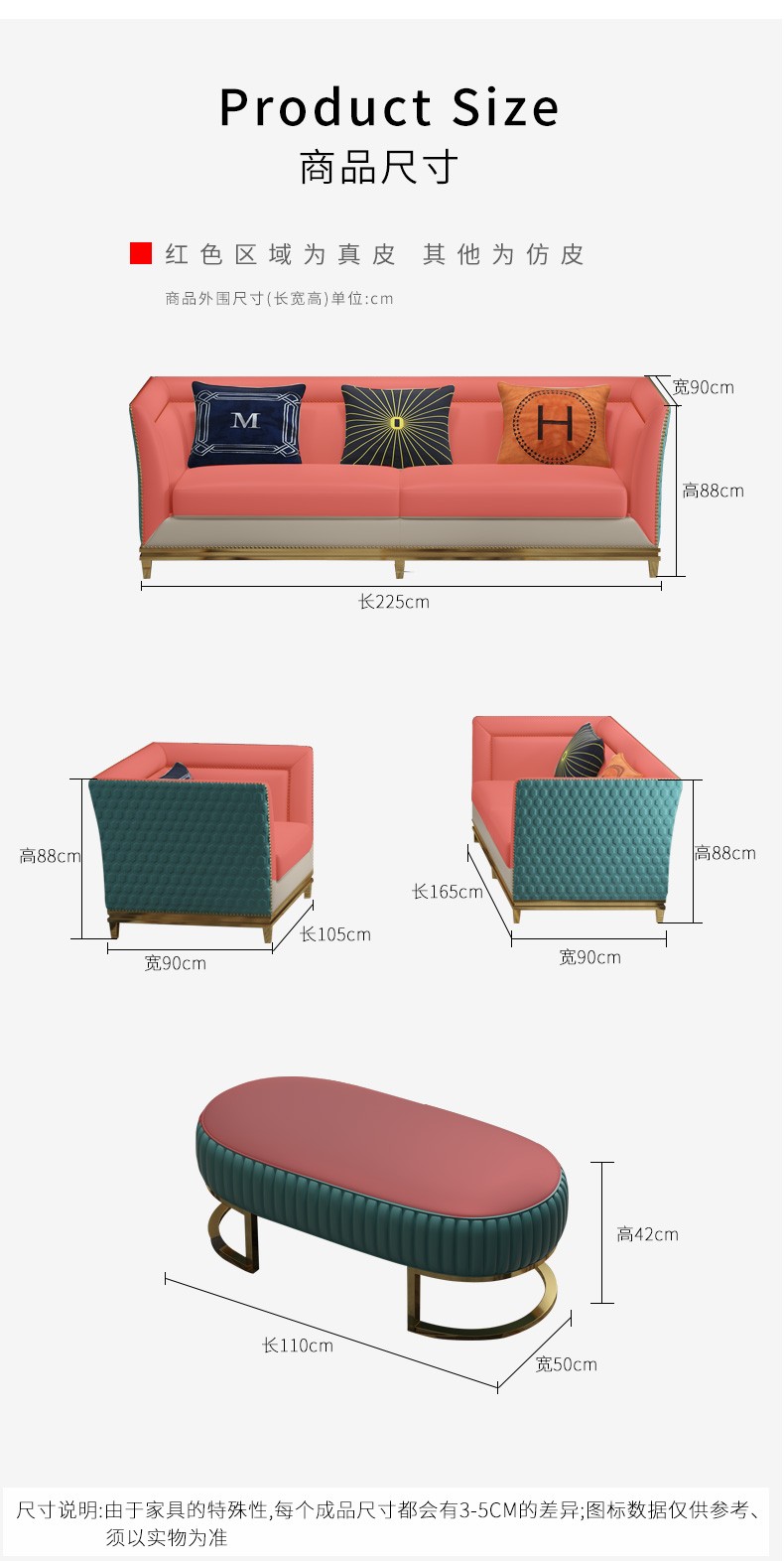 パパパサソファ客間ピソファァ後の近代的な軽奢なピソファァ港スタイルの板室デザイナーの家具は米国式の軽奢な本革ソファァァヨーロッパ式ソファーイタリアの輸入頭層牛革+輸入恒温スポンジシングル位+2人位+3人位